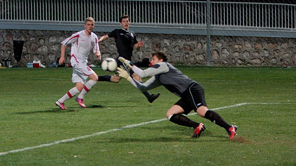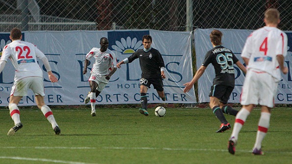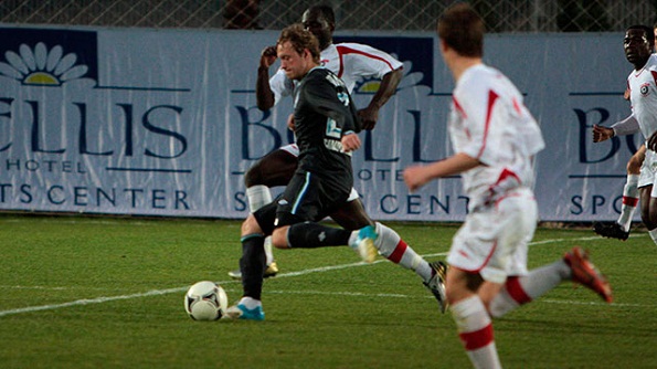 Вчера в своем втором спарринге на сборах в Турции «Сталь» встретилась с самарскими «Крыльями Советов», занимающими в таблице российской Премьер-лиги 14 место. Алчевцы начали встречу очень активно, и уже в первые 15 минут команда Анатолия Волобуева упустила три стопроцентных момента. Сначала Акименко, сыграв в «стеночку» со Степанюком, вышел один в один с голкипером, но с линии вратарской пробил возле стойки. Тут же мог забивать Окана-Стази, добивавший мяч метров с тринадцати – мимо ближнего угла. А самый лучший шанс был у Степанюка, который после передачи слева от Акименко в касание бил с линии вратарской – голкипер «Крыльев Советов» к мячу уже не успевал, но защитник россиян Голубев успел выбить мяч из пустых ворот. Все, чем ответила команда Гаджи Гаджиева в первом тайме: удар Максимова из центрального круга, пытавшегося перебросить Ганева, сыгравшего головой за пределами штрафной площадки – мяч в цель не попал.